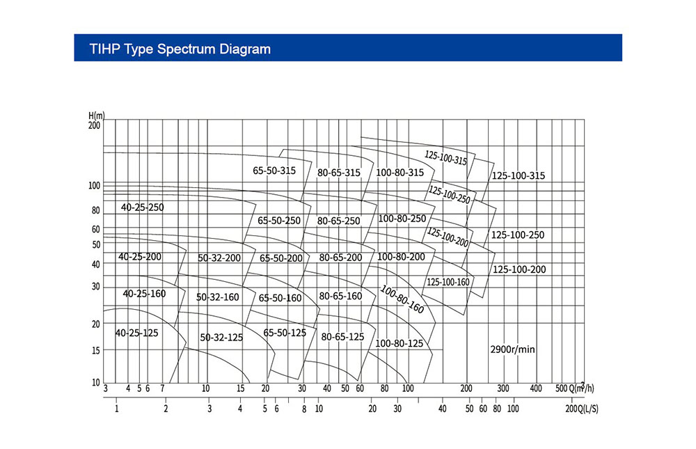 آریھ میں متعدد منحنی خطوط اور زون شامل ہیں ، ہر ایک مخصوص پمپ ماڈل کی نمائندگی کرتا ہے۔ مثال کے طور پر ، "40-25-125" اور "50-32-160" مختلف پمپ ماڈل کی نشاندہی کرتے ہیں۔
